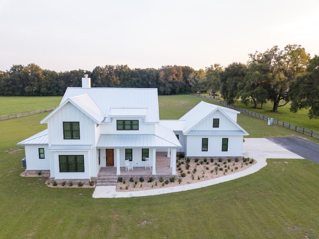 Beautiful white farmhouse on 3 1/2 Acres in Alachua. This custom 2 story house features a wraparound brick floor porch, tall great room ceilings with beams, as well as a two-toned kitchen cabinet design. The standing seam metal roof, hardie board exterior, brick faced stem wall are sure to help this home stand up to the elements!